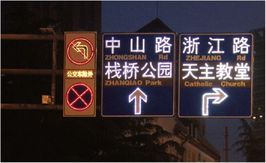 “主動發光標志”概念的創建,是用于區別普通逆反射交通標志的,我們都知道,逆反射交通標志是通過接受外部光源照射而被動反光,從而實現將標志版面交通語言信息向駕駛人傳遞的功能。主動發光標志,即“采用LED等主動發光器件為發光源顯示圖形符號、文字等內容,向道路利用者傳遞信息的交通標志”(定義取自《LED主動發光道路交通標志》(GB/T31446-2015)),不需要外借光源,能主動發光,并同時兼具逆反射功能。