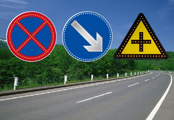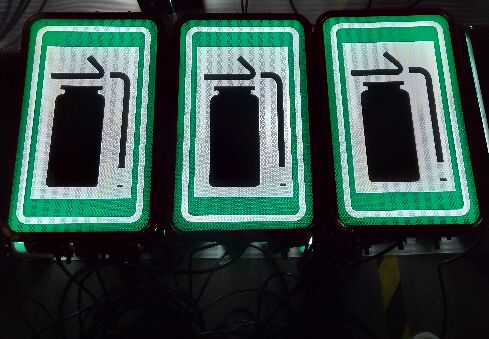 在高速路、快速路及偏遠的農村路,常常因為無法提供供電電源,部分耗電較大的內置照明類指路主動發光標志無法安裝,本款“大型指路類點陣型主動led發光標志”,屬于“led發光標志”范疇,因其耗電相對較少,可采用太陽能蓄電池供電方式,滿足標志發光電能供應,常常被運用在上述路段、區域。