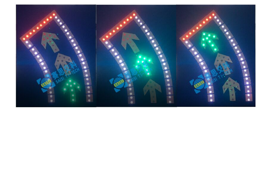 ?2、工藝說明:標志版面由LED發光管組成停車線、邊緣線、“左轉待行”文字;由顯示屏動態(P10)顯示紅、黃、綠三色動態箭頭,通過控制模塊調取信號燈燈色狀態,在標志版面形成動態三種狀態,動態引導待轉車流通行權限。