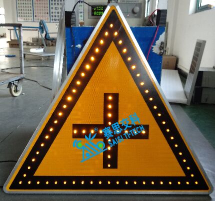 工作原理:當支線檢測到有車輛或行人,將信息傳輸給主線裝備,設置于主線的智能預警哨兵裝備,顯示屏紅色顯示"右側來車",語音播報:"右側來車,請減速駕駛!",暴閃燈交替頻閃;當主線檢測到有車輛時,將信息傳輸給支線裝備,設置于支線的智能預警哨兵裝備,顯示屏紅色顯示"左側來車",語音播報:"左側來車,請減速通行!";暴閃燈交替頻閃。常態下:顯示屏滾動綠色顯示"超速駕駛,易出禍端;文明駕駛,安全陪伴",關閉語音播報,暴閃燈頻閃。本公路叉口智能預警哨兵裝備,能實現主線與支路實現車輛動態信息的實時互動,通過聲光電的全方位,立體式多重預警,提升公路叉口的交通安全等級,降低事故發生率,避免交通參與者的人員傷亡和財產損失。