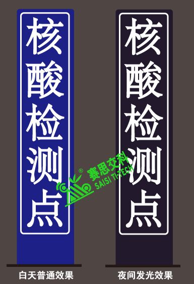 為做好新冠疫情防控,全國各個城市、鄉(xiāng)村都設(shè)置了大量的核酸檢測點(diǎn),方便居民及時參與、配合核酸檢測。根據(jù)不同城市疫情的各自嚴(yán)重形勢,通常會出現(xiàn)全員核酸、或應(yīng)檢盡檢的檢測要求。居民們白天需要上班工作,通常會選擇下班后才去做核酸。在夜晚,為方便對核酸檢測點(diǎn)進(jìn)行有效指示,特設(shè)計(jì)本“核酸檢測點(diǎn)”發(fā)光指示標(biāo)志,具體參數(shù)如下: