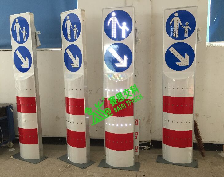 (二)高實用性。太陽能道口閃光警示柱,其通體為主動閃爍發(fā)光的LED燈珠,有效增益設(shè)備在夜間、惡略天氣中的識別率,既增強(qiáng)了警示效果,又提高了交通語言信息的遠(yuǎn)距離視認(rèn)性。其上部標(biāo)志可以為:右下行、注意行人(兒童)、機(jī)動車與非機(jī)動車的路權(quán)指引、黃閃警示燈、禁止掉頭等標(biāo)志圖案,款式多樣,能滿足多種危險場景需求。