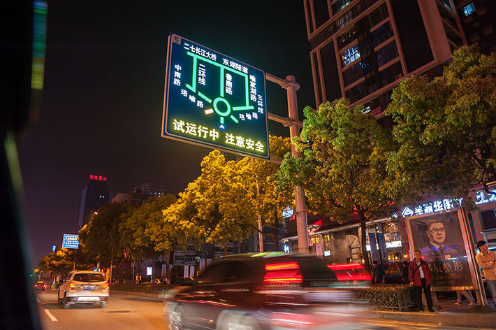 (4)系統(tǒng)調(diào)光功能:誘導(dǎo)標(biāo)志應(yīng)設(shè)置環(huán)境照度檢測裝置,根據(jù)環(huán)境照度調(diào)整發(fā)光像素的發(fā)光強(qiáng)度,以避免夜間照度較低時形成眩光,影響信息的視讀。進(jìn)行調(diào)光控制時誘導(dǎo)標(biāo)志的亮度應(yīng)可調(diào)至最高亮度的10%以下。