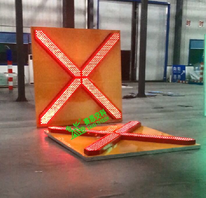 為提升禁航標志的遠距離視認性和警示性,通常都采用LED發光工藝,根據LED布點需要,通過數碼打控工藝,將標志版面均勻開孔,外嵌LED發光燈串,要求其燈色為黃色定光,通過設置必要的電阻、電容,來調節標志的亮度及均光性,夜間“×”型圖案顯示為黃色,以實現標志的主動發光特性。