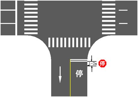 5、停車讓行標(biāo)志一般設(shè)置在交叉口需要車輛停車的停止線前1~2m處,并不妨礙交叉口通視三角區(qū)視距。
