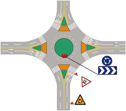 3、環(huán)形交叉口,入環(huán)車輛需要讓行環(huán)內(nèi)車輛時,應(yīng)設(shè)置減速讓行標(biāo)志。
