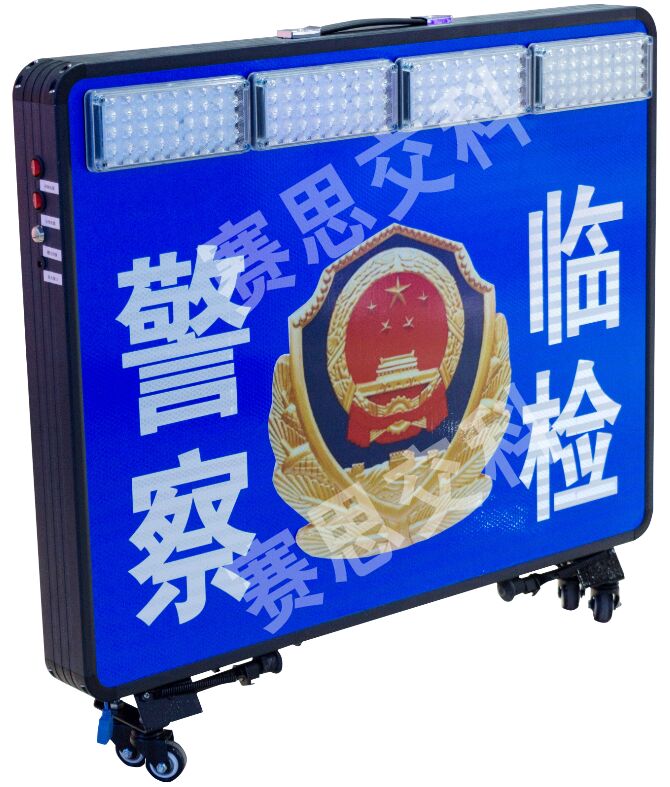 2、警示屏正面、背面各鑲嵌2組紅藍爆閃警示燈,交替閃爍。
