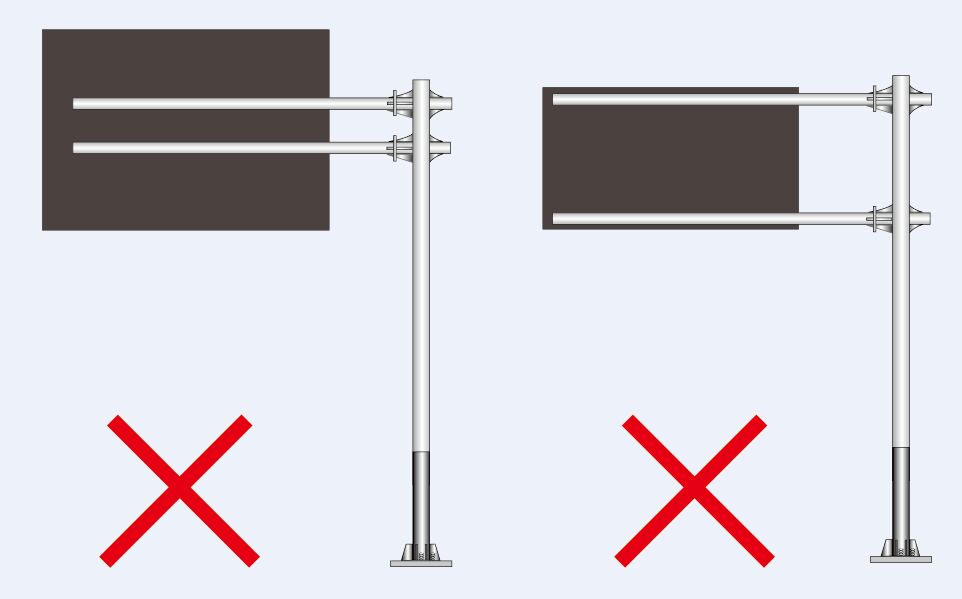 (3)桿件檔距設(shè)計(jì)(根據(jù)標(biāo)志高度而定),下圖為錯(cuò)誤的檔距設(shè)置圖例。