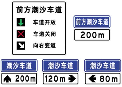在交通流潮汐變化的路段,可根據(jù)交通組織管理需求,單獨分配一個車道作為潮汐車道,該車道中車輛行駛方向可隨交通管理需要分時段變化,應使用潮汐車道標志、車道行駛方向信號控制設(shè)施來配合實現(xiàn)車道行車方向隨需要變化的功能。