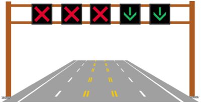 (4)潮汐車道入口處應有明顯標線,設(shè)置物理隔離設(shè)施、可變信息板或信號燈,明確指示各車道